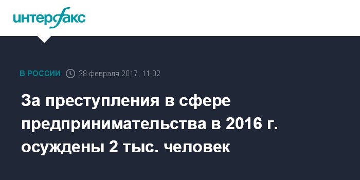 За преступления в сфере предпринимательства в 2016 г. осуждены 2 тыс. человек