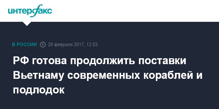 РФ готова продолжить поставки Вьетнаму современных кораблей и подлодок