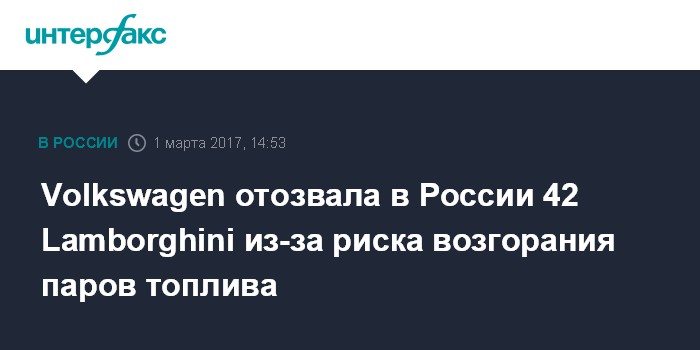 Volkswagen отозвала в России 42 Lamborghini из-за риска возгорания паров топлива