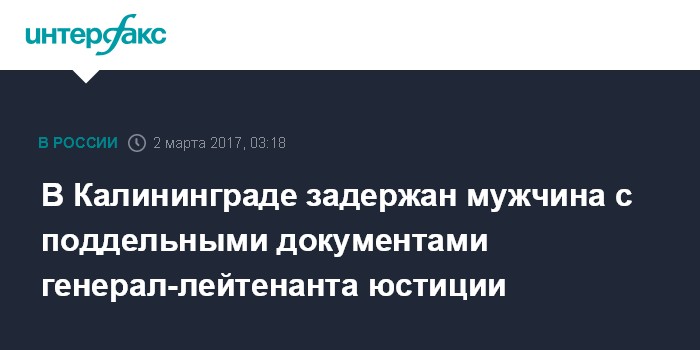 В Калининграде задержан мужчина с поддельными документами генерал-лейтенанта юстиции