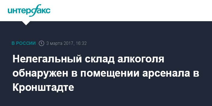 Москва. 3 марта. INTERFAX.RU - Нелегальный склад алкогольной продукции обнаружен в помещении арсенала в Кронштадте.