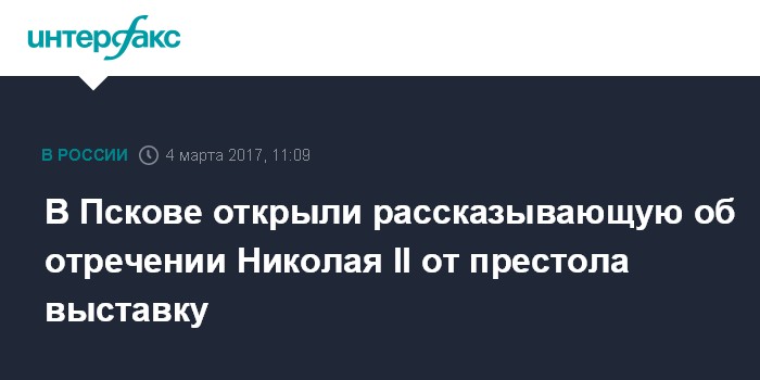 В Пскове открыли рассказывающую об отречении Николая II от престола выставку