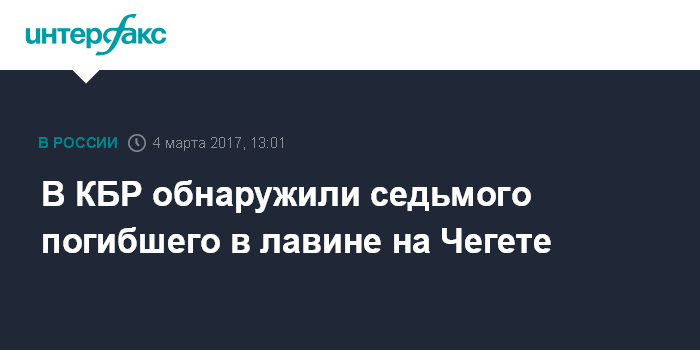 Москва. 4 марта. INTERFAX.RU - Обнаружено тело последнего - седьмого - погибшего из числа попавших в лавину на Чегете в Кабардино-Балкарии, сообщил "Интерфаксу" оперативный дежурный Эльбрусского высокогорного поисково-спасательного отряда МЧС России в субботу.