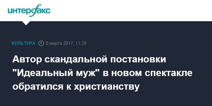 Автор скандальной постановки "Идеальный муж" в новом спектакле обратился к христианству