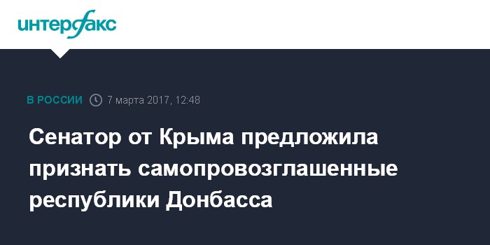Сенатор от Крыма предложила признать самопровозглашенные республики Донбасса