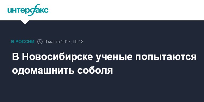 Москва. 9 марта. INTERFAX.RU - Специалисты федерального исследовательского центра "Институт цитологии и генетики" проводят эксперимент по одомашниванию соболя, сообщает пресс-служба ИЦиГ.