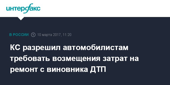 КС разрешил автомобилистам требовать возмещения затрат на ремонт с виновника ДТП