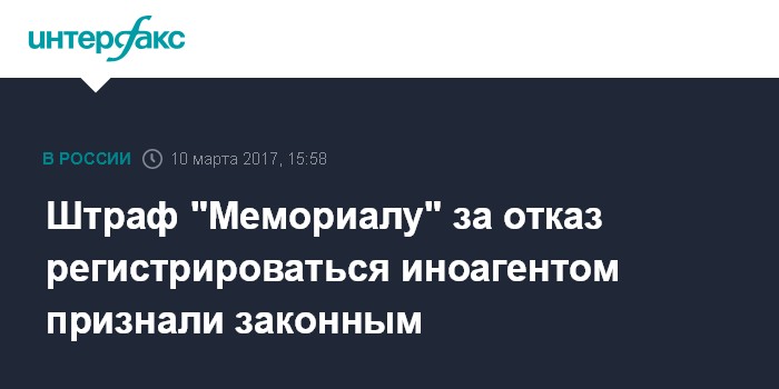 Штраф "Мемориалу" за отказ регистрироваться иноагентом признали законным