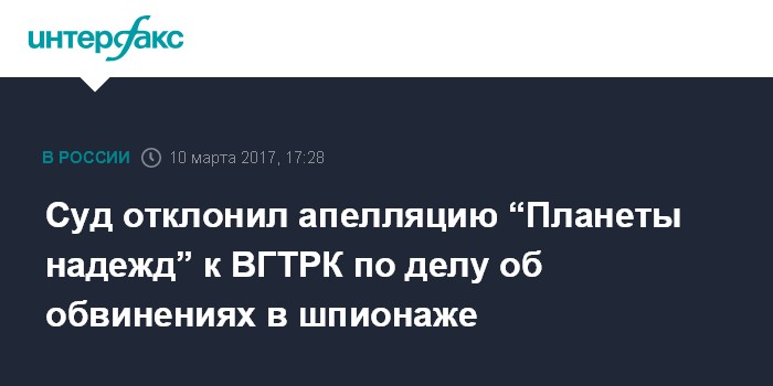 Суд отклонил апелляцию “Планеты надежд” к ВГТРК по делу об обвинениях в шпионаже
