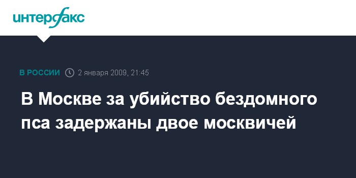 Москва. 2 января. ИНТЕРФАКС-МОСКВА - В Москве в Северо-Восточном округе за жестокое убийство бродячей собаки задержаны двое москвичей.