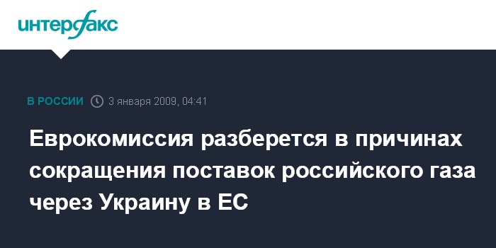 Брюссель, 3 января. ИНТЕРФАКС - Член Еврокомиссии, курирующий энергетику, Андрис Пиебалгс обещал потребовать срочного возобновления выяснить причины сокращения поставок российского газа по трубопроводам через Украину в некоторые страны Евросоюза в полном объеме.