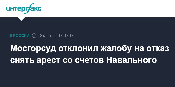 Мосгорсуд отклонил жалобу на отказ снять арест со счетов Навального