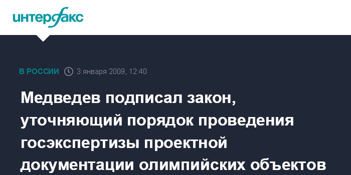 Медведев подписал закон, уточняющий порядок проведения госэкспертизы проектной документации олимпийских объектов