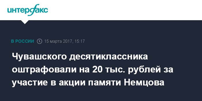 Чувашского десятиклассника оштрафовали на 20 тыс. рублей за участие в акции памяти Немцова