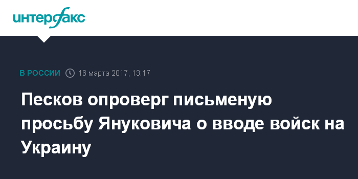 Песков опроверг письменую просьбу Януковича о вводе войск на Украину