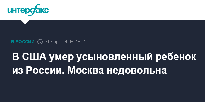 В сообщении Минобрнауки, поступившем в "Интерфакс", говорится о "трагической гибели в США Николая Емельянцева, усыновленного в феврале нынешнего года гражданами США - супругами Федором и Кимберли Кей Емельянцевыми".