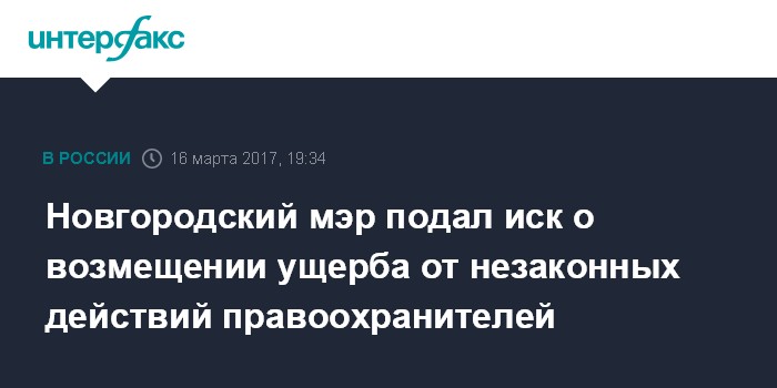 Новгородский мэр подал иск о возмещении ущерба от незаконных действий правоохранителей
