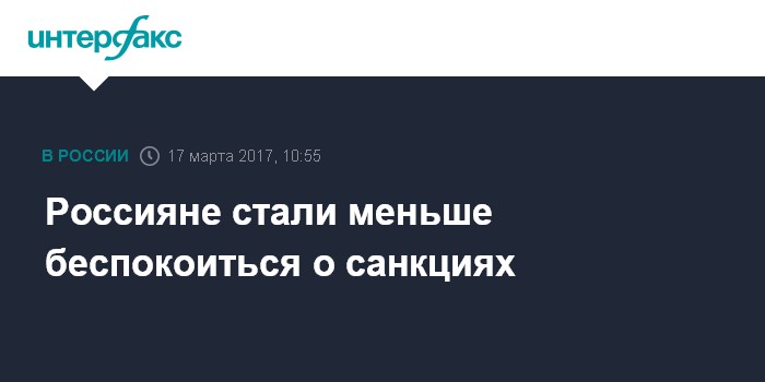 Москва. 17 марта. INTERFAX.RU - Беспокойство граждан России относительно западных санкций снизилось по сравнению с началом 2015 года: если два года назад 52% считали, что санкции усугубили ситуацию в стране, то сейчас - 27%, сообщил в пятницу ВЦИОМ. При этом о положительных последствиях введения санкций россияне стали говорить существенно чаще - 35% сейчас против 17% в 2015 году.