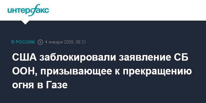 Москва. 4 января. ИНТЕРФАКС - Совет безопасности ООН после многочасовых консультаций, посвященных новой наземной фазе израильской операции, пришел к мнению о необходимости прекращения огня в Газе, сообщает телеканал "Вести".