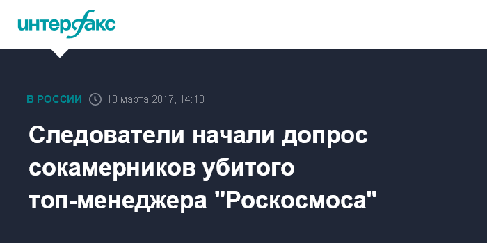 Следователи начали допрос сокамерников убитого топ-менеджера "Роскосмоса"