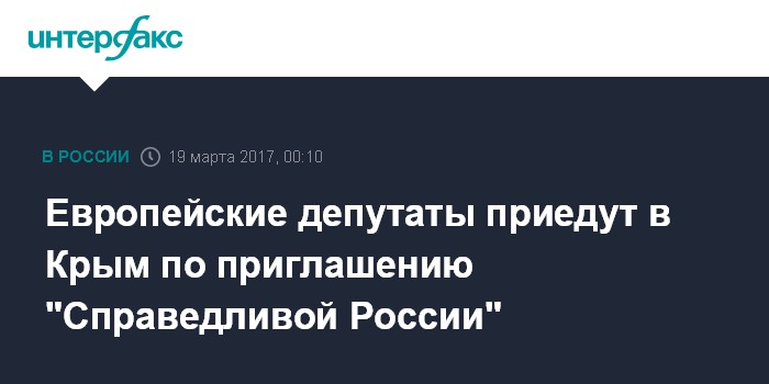 Москва. 19 марта. INTERFAX.RU - Группа парламентариев Европарламента и ряда европейских стран посетят Крым 19-21 марта по приглашению партии "Справедливая Россия", сообщила пресс-служба партии.