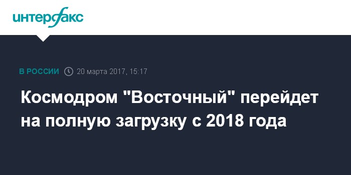 Москва. 20 марта. INTERFAX.RU - Космодром "Восточный" будет переведен под полную загрузку с 2018 года, сообщил вице-премьер Дмитрий Рогозин.