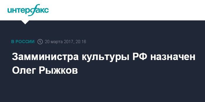 Замминистра культуры РФ назначен Олег Рыжков