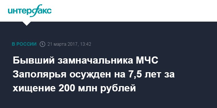 Бывший замначальника МЧС Заполярья осужден на 7,5 лет за хищение 200 млн рублей