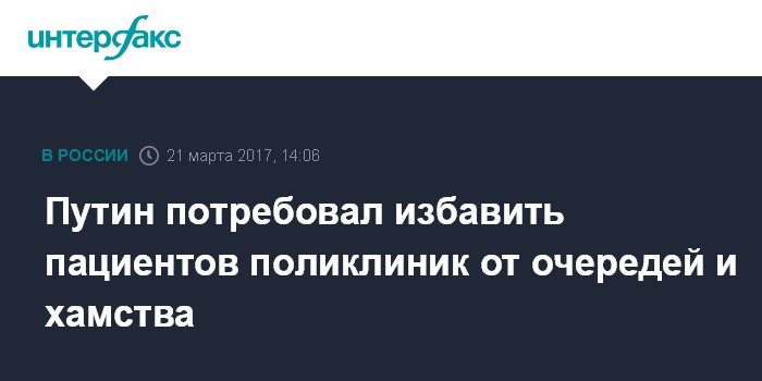 Москва. 21 марта. INTERFAX.RU - Президент России Владимир Путин призвал уделять больше внимания борьбе с хамством в больницах и поликлиниках.