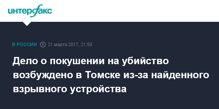 Дело о покушении на убийство возбуждено в Томске из-за найденного взрывного устройства