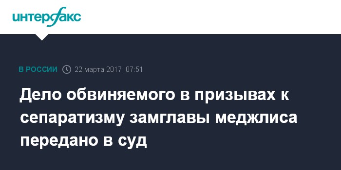 Дело обвиняемого в призывах к сепаратизму замглавы меджлиса передано в суд
