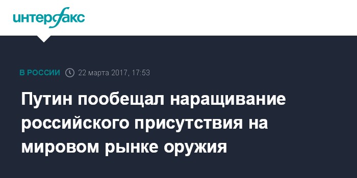"При этом мы намерены наращивать присутствие России на мировом рынке вооружений и военной техники, расширять географию поставок и перечень экспортируемой продукции, улучшать качественные характеристики отечественного оружия", - заявил Путин.