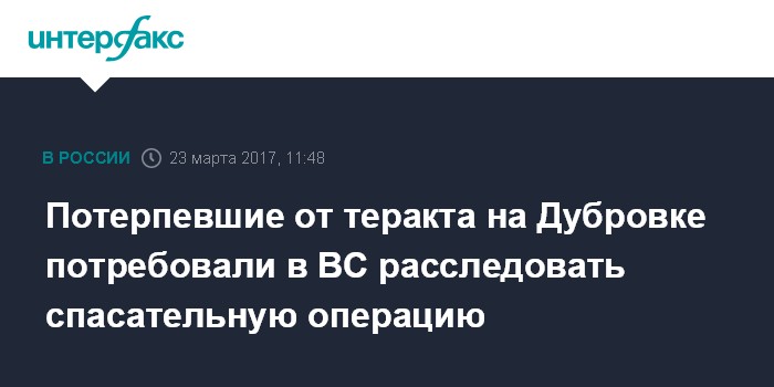 Москва. 23 марта. INTERFAX.RU - Представители потерпевших по делу о захвате заложников в театральном центре на Дубровке в 2002 подали жалобу в Верховный суд РФ, в которой требуют расследовать все обстоятельства планирования спасательной операции.