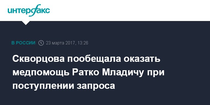 Скворцова пообещала оказать медпомощь Ратко Младичу при поступлении запроса