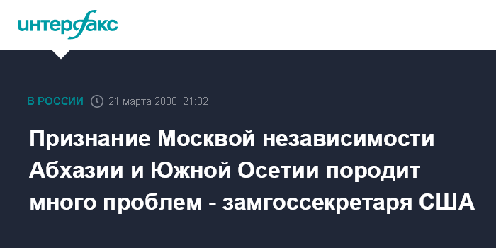 Признание Москвой независимости Абхазии и Южной Осетии породит много проблем - замгоссекретаря США