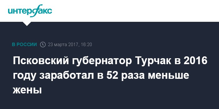 Псковский губернатор Турчак в 2016 году заработал в 52 раза меньше жены