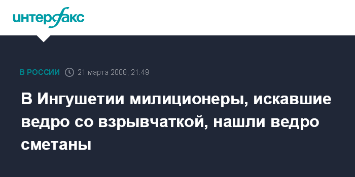 В Ингушетии милиционеры, искавшие ведро со взрывчаткой, нашли ведро сметаны