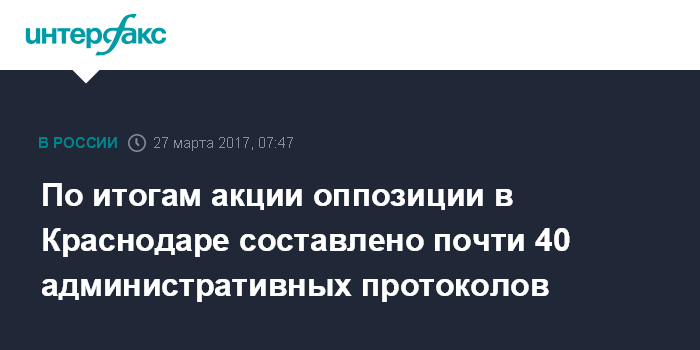 По итогам акции оппозиции в Краснодаре составлено почти 40 административных протоколов