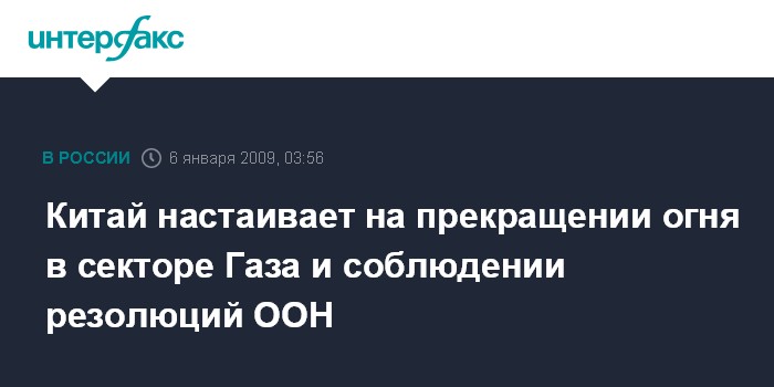 Китай настаивает на прекращении огня в секторе Газа и соблюдении резолюций ООН