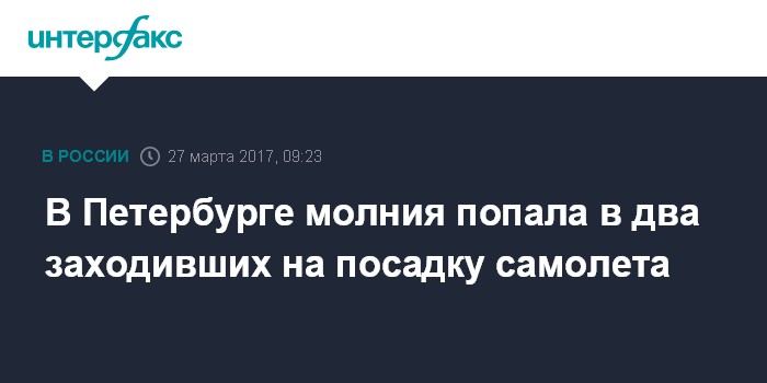 Москва. 27 марта. INTERFAX.RU - Два пассажирских лайнера перед посадкой в Санкт-Петербурге минувшим вечером "столкнулись" с разрядами молнии, сообщил "Интерфаксу" в понедельник источник в авиадиспетчерских службах.