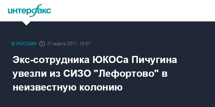 Источник сообщал "Интерфаксу", что Пичугин, осужденный на пожизненное заключение, был доставлен в "Лефортово" для процессуального закрепления его показаний по новому уголовному делу в отношении экс-главы ЮКОСа Михаила Ходорковского.