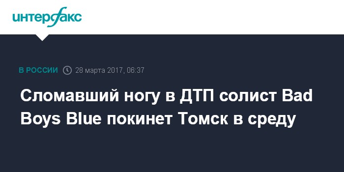Сломавший ногу в ДТП солист Bad Boys Blue покинет Томск в среду
