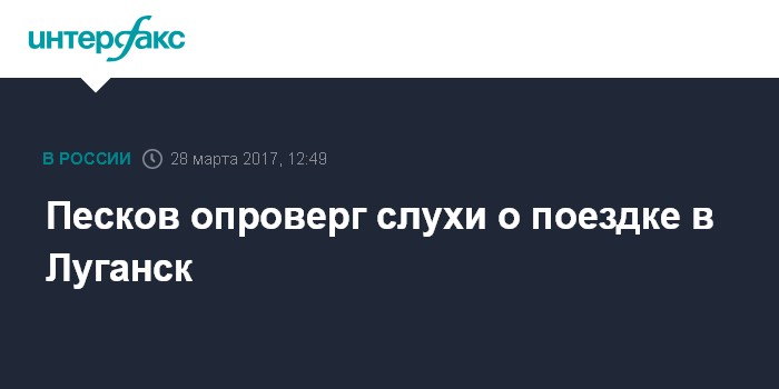 Москва. 28 марта. INTERFAX.RU - Пресс-секретарь президента РФ Дмитрий Песков опроверг сообщения некоторых украинских СМИ о том, что он якобы посетил Луганск.
