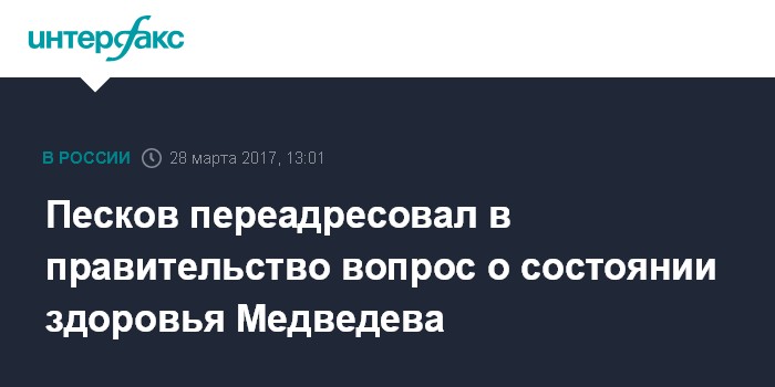 Песков переадресовал в правительство вопрос о состоянии здоровья Медведева