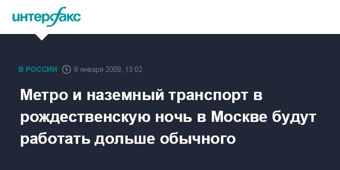Москва. 6 января. INTERFAX.RU - Время работы столичного общественного транспорта в рождественскую ночь будет продлено, сообщили "Интерфаксу" в городской администрации.