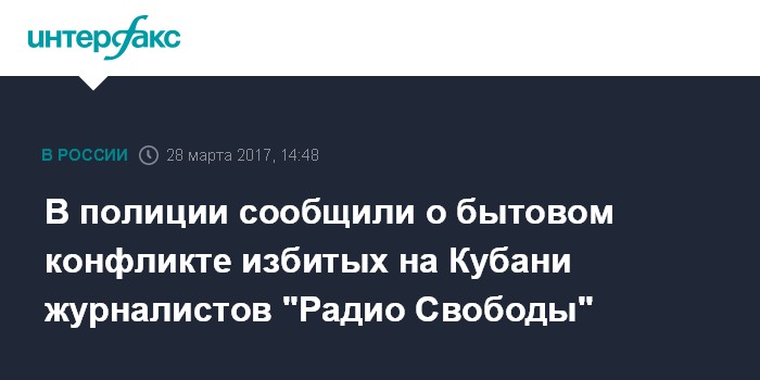 Между тем источник в правоохранительных органах Кубани сообщил агентству, что сотрудники "Радио Свобода" стали участниками конфликта на бытовой почве.