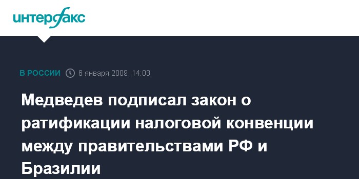 Медведев подписал закон о ратификации налоговой конвенции между правительствами РФ и Бразилии