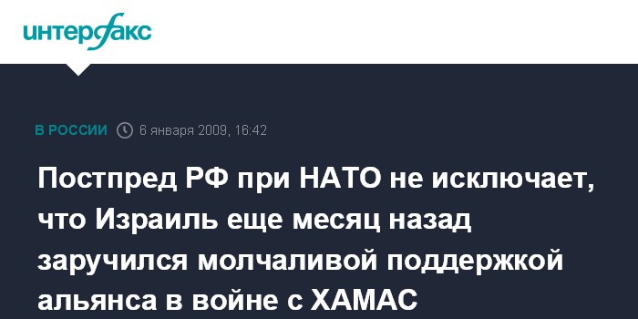 Постпред РФ при НАТО не исключает, что Израиль еще месяц назад заручился молчаливой поддержкой альянса в войне с ХАМАС