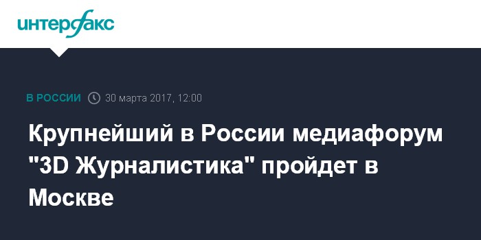 Москва. 30 марта. INTERFAX.RU - В Москве пройдет крупнейший в России медиафорум "3D Журналистика", который станет площадкой для обсуждения вопроса адаптации глобальных медиатрендов под локальные задачи.