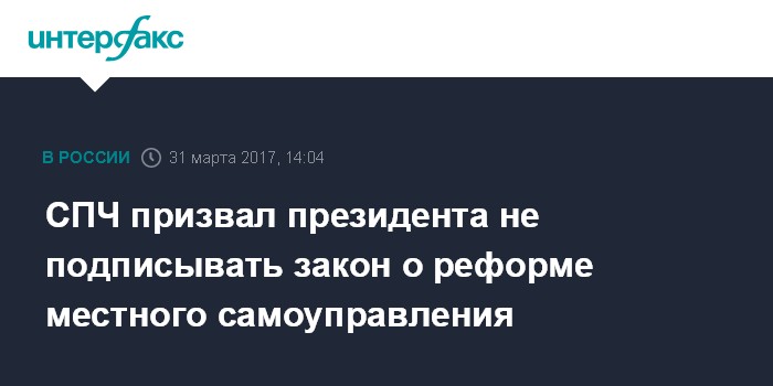 "Совет предлагает отклонить принятый Государственной Думой 24 марта и одобренный Советом Федерации 28 марта федеральный закон № 768237-6 "О внесении изменений в федеральный закон "Об общих принципах организации местного самоуправления в Российской Федерации"", - говорится в сообщении на сайте СПЧ.